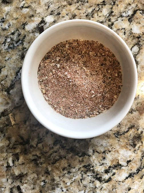 You can make your Cajun seasoning as spicy or as mild as you like. Typically I would use cayenne pepper, but I could not find it this week, so I used ground, dried jalapeños from my garden. I would highly encourage you to only add 1/4 of a teaspoon of whatever spicy pepper you choose at a time, unless you have a good idea of your heat tolerance level. I added 1 full teaspoon to mine since I was using ground jalapeño instead of cayenne, and it was still quite warm, and because of that did not add much to my dirty rice. Also, I would have preferred onion powder over dehydrated onion, but my store was also out of the regular onion powder. If you have celiac, or a severe gluten intolerance, make sure the spices you are using are gluten free. This recipe will make enough to store in your spice cabinet. You can store it in a glass jar, plastic container, or even a food storage bag.