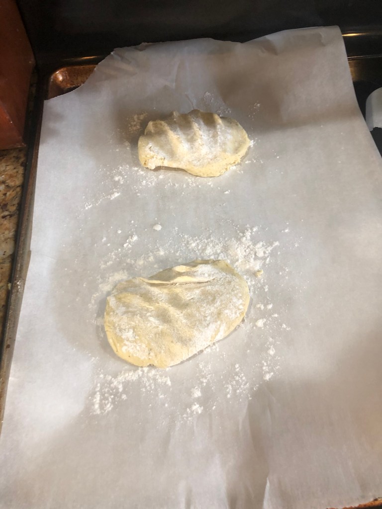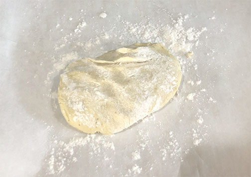 Dough dusted with flour and ready to roll.