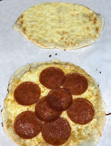 Rolled thin pizza crust.
