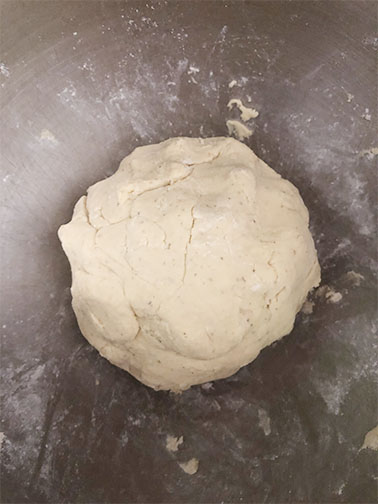 - Use a silicone spatula to scrape any dough that may be stuck to the side of the bowl, and make a rough ball-like shape with the dough.